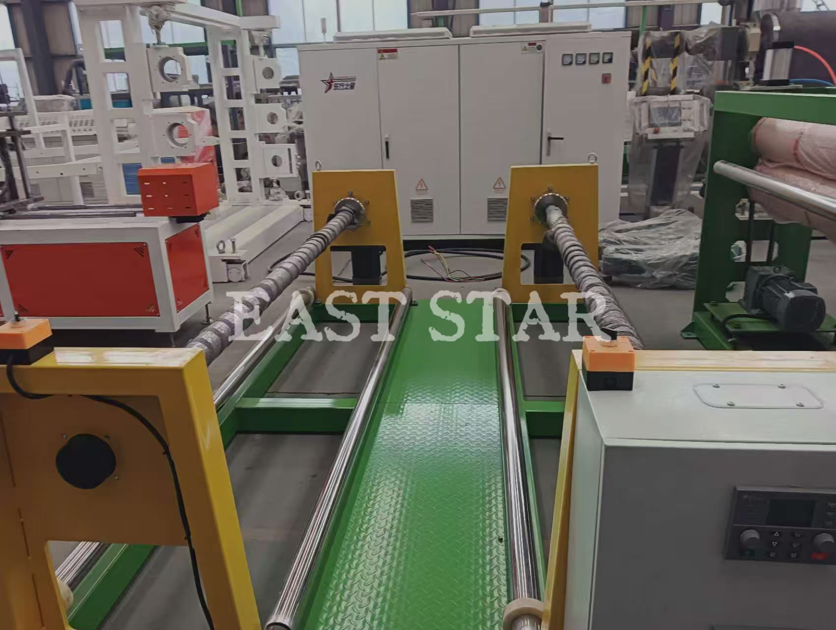 · Dispositivo de recogida y rebobinado: Proporciona tracción estable y enrolla automáticamente la hoja enfriada y moldeada en una bobina limpia para facilitar su transporte y procesamiento posterior.