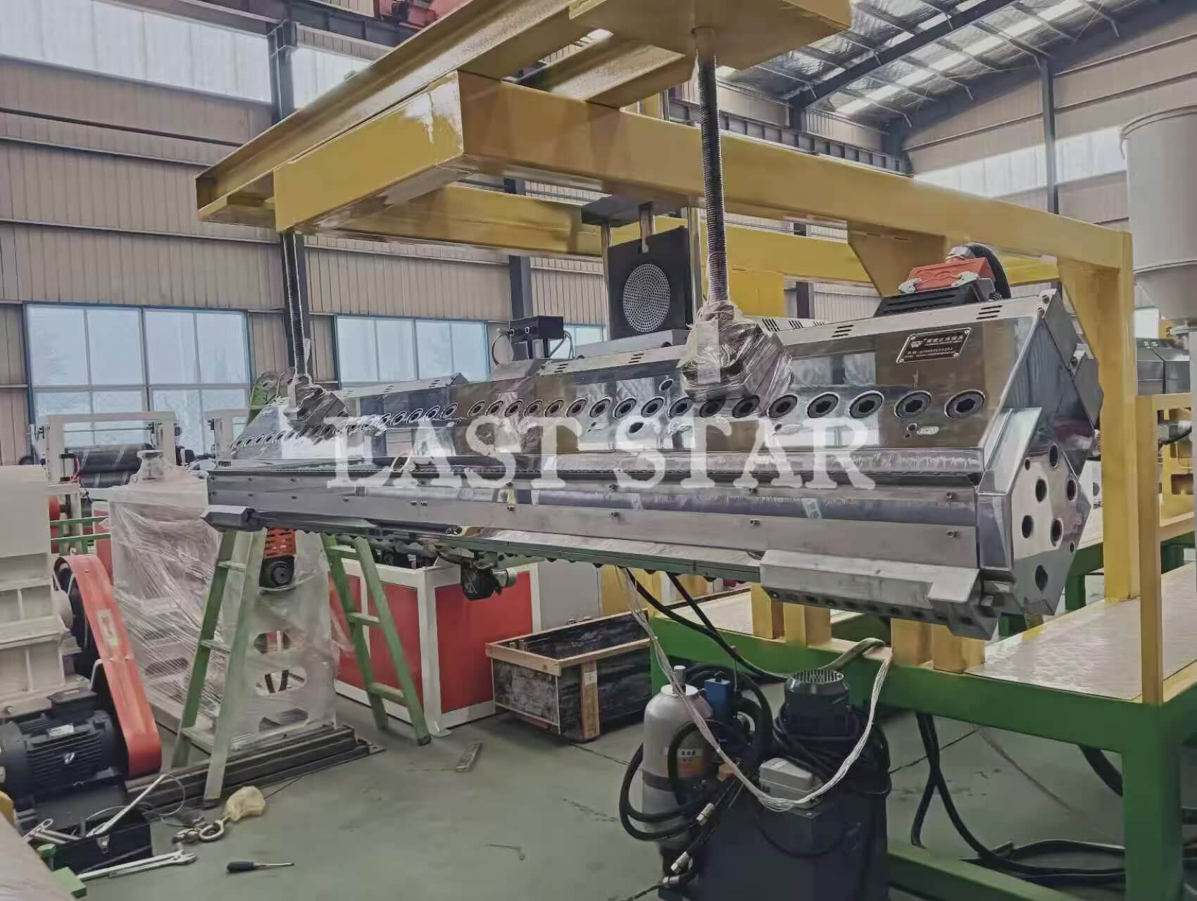 [Qingdao, China, 8 de septiembre de 2025] – Qingdao EASTSTAR Plastic Machinery Co., Ltd. anunció recientemente que su recientemente desarrolladoLínea de extrusión de láminas con cinta de estiércol totalmente automática DQ-2400ha completado el montaje final y la puesta en marcha, y ha salido con éxito de la línea de producción. Este equipo está diseñado específicamente para producir cintas de estiércol de polipropileno (PP) de alto rendimiento de 2,4 metros de ancho, lo que marca un nuevo paso adelante en la fortaleza tecnológica de la empresa en la fabricación de equipos de acuicultura de alta gama.