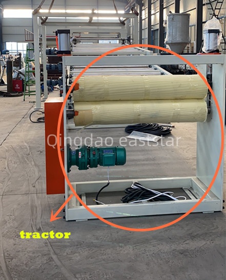 todo ellínea de producción de coextrusión multicapaTambién incluye dos cambiadores de malla hidráulicos, un soporte de refrigeración de 8 metros y un sistema de corte por tracción. El cambiador de criba utiliza componentes hidráulicos taiwaneses, lo que permite cambios de criba sin detener la máquina. La máquina de tracción está equipada con rodillos de caucho de nitrilo de Φ240×2500 mm, impulsados por un motor de 2,2 KW, logrando una regulación de velocidad sincrónica con los tres rodillos. El sistema de control eléctrico del equipo de coextrusión de láminas de ABS utiliza un PLC y una pantalla táctil Siemens serie S7, combinados con un convertidor de frecuencia ABB, para garantizar el funcionamiento coordinado de toda la línea.