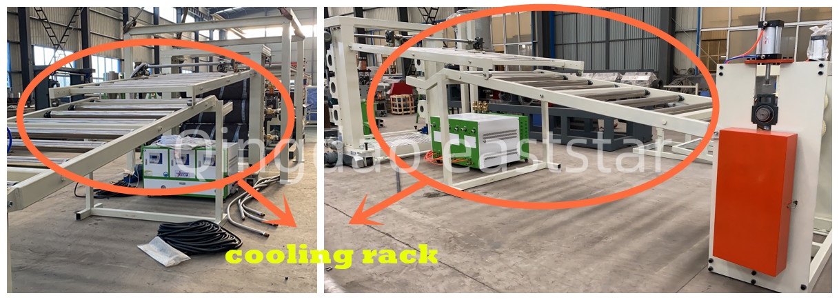 Hemos equipado elLínea de producción de láminas de coextrusión multicapa de ABScon un completo sistema de alimentación y auxiliar. La extrusora SJ-130 está equipada con un alimentador de tornillo de acero inoxidable E-1000 y la extrusora SJ-70 está equipada con un alimentador de vacío E-300, lo que garantiza un suministro preciso de diferentes materias primas. El soporte de refrigeración está equipado con rodillos de acero inoxidable de 8 metros de largo y tres cortadores de bordes ajustables, lo que garantiza una refrigeración suficiente de la chapa y unos bordes limpios. La máquina cortadora utiliza una cizalla eléctrica mecánica, equipada con un codificador Autonics coreano, para lograr un corte automático de longitud fija.