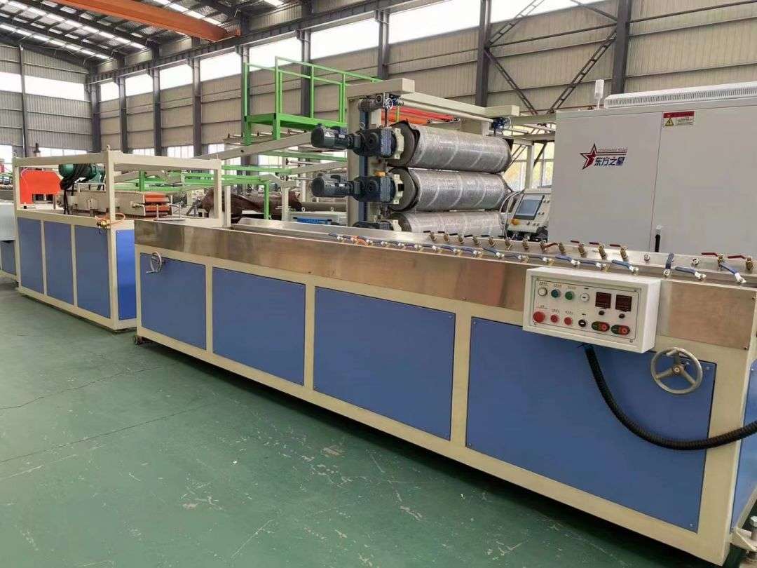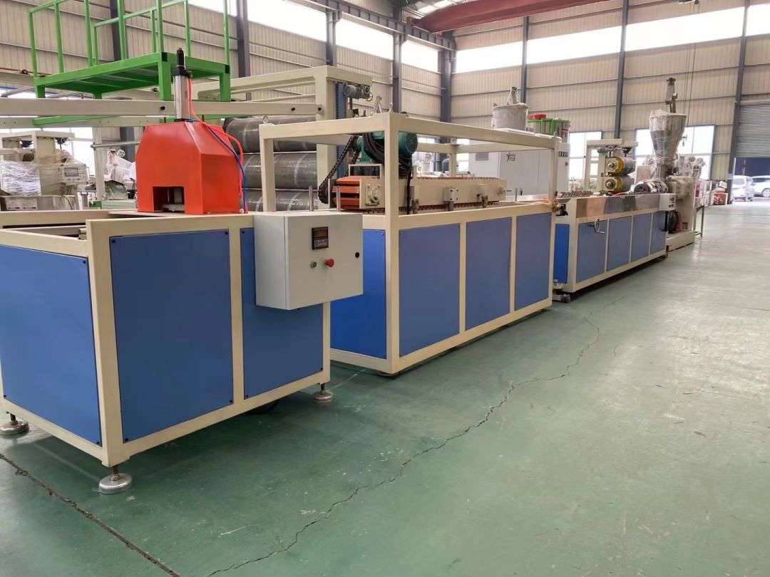 Línea de producción de perfiles La línea de producción de perfiles utiliza extrusoras cónicas de doble tornillo serie SJSZ-65/132, plataformas de conformado al vacío de acero inoxidable, tractores de orugas, máquinas integradas de corte automático y estantes de descarga abatibles. La plataforma moldeadora está equipada con una bomba de vacío de alta presión y una bomba de agua ajustables en cuatro dimensiones. El tractor se sujeta neumáticamente. La máquina cortadora automática de longitud fija utiliza un interruptor de recorrido para cortar a una longitud fija. La estantería de apilamiento tiene 6 metros de largo, está fabricada en acero inoxidable y se voltea neumáticamente.