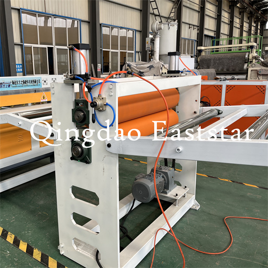 soporte, una máquina de tracción de rodillos de caucho, una máquina cizalla y un dispositivo de cinta transportadora. Extrusora de placa antideslizante de PVC Equipo, ancho del producto y