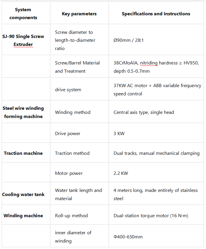 Diese Produktionslinie für die Extrusion von PVC-Stahldraht-verstärkten Schläuchen ist die ideale Wahl für die Herstellung von Hochleistungs-Stahldraht-verstärkten Schläuchen:
