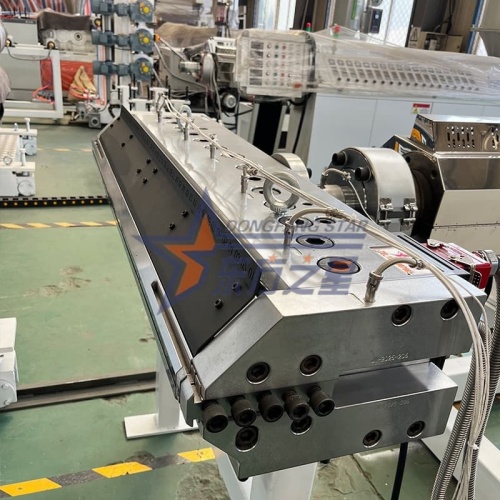 Molde de canal estilo percha de 1160 mm, con canal cromado y pulido espejo para reducir la retención y degradación del material TPE. Equipado con un dispositivo de borde ajustable (200 mm por lado), se puede ajustar de manera flexible dentro de un rango de ancho de 600 a 1000 mm para adaptarse rápidamente a diferentes especificaciones de pedido.