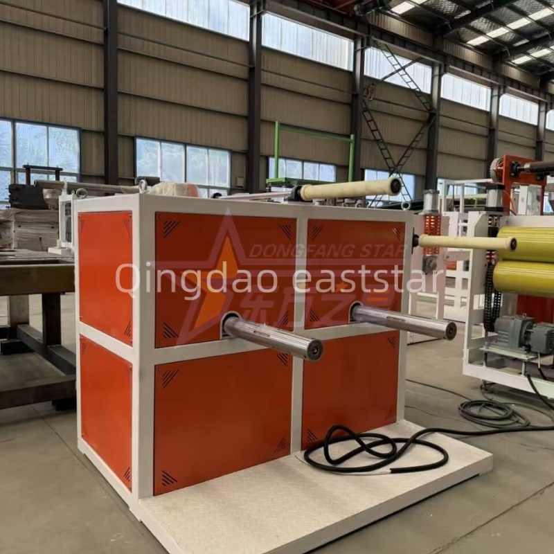 La calandria de 3 rodillos (∮320 mm × 500 mm) cuenta con rodillos con acabado de espejo controlados independientemente (Dureza RC60-65). Con control independiente de temperatura y velocidad, proporciona enfriamiento y calandrado precisos, lo que da como resultado láminas con una planitud, suavidad y espesor constante excepcionales.